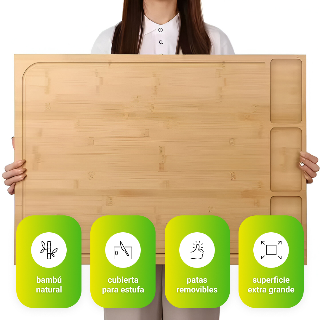 BambooCraft™ – Tabla de Cortar de Bambú Extra Grande con Patas Desmontables